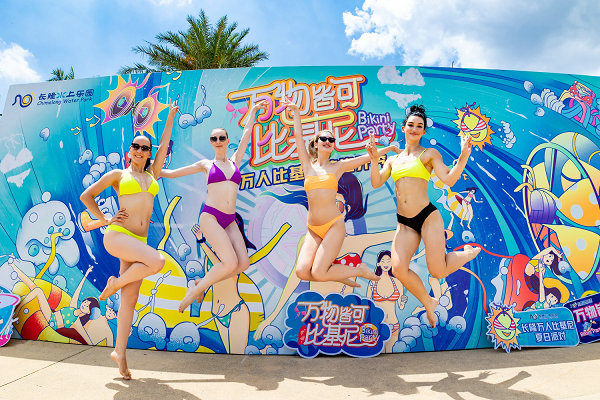 信息时报讯(记者 叶佳茵)5月15日,第14届长隆水上乐园“万人比基尼”活动正式拉开帷幕,数千名比基尼美女聚集在全球最大的造浪池,摆出了一个动感的“NO1”造型,共同释放耀眼的青春。据悉,今年长隆水上乐园“万人比基尼”活动的主题为“万物皆可比基尼”,整个园区内,小到水杯井盖垃圾桶,大到园区装置,四处可见比基尼主题的装饰。