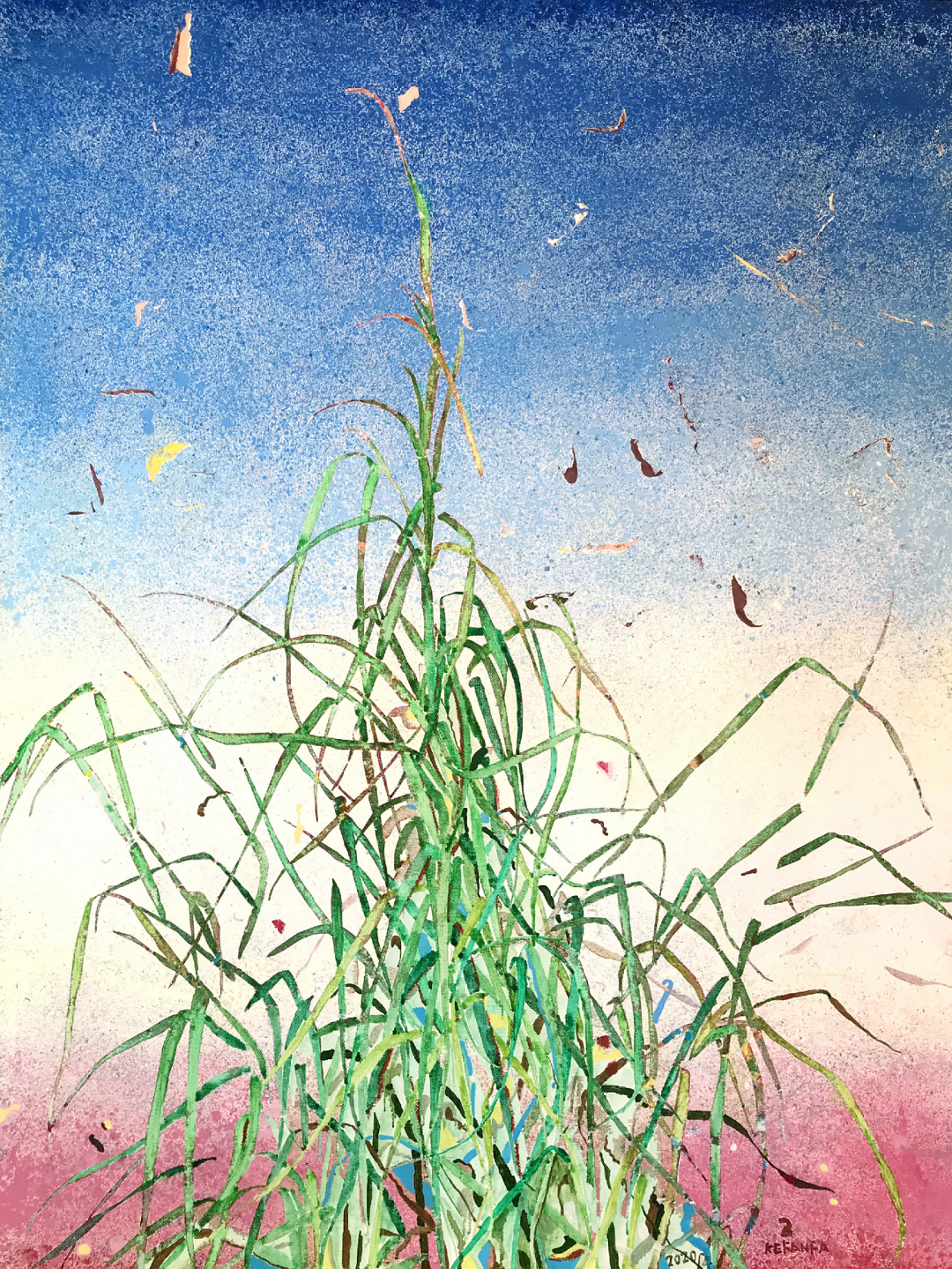 仔细观察,会发现柯坎法作品中常常出现众多如飞行般自由跃出或延伸的线条,仿佛信手一挥的偶然天成,使画面和颜色有了交错与递进,这些类似编织的效果营造出了一种深度的错觉,而鲜明的颜色更加强了这一效果。飞行般的线条是一次分割、一个断层、一道落差,是揭示和回溯的延续,是打破时间空间的镜面,是将我们带到我们之外的密匙。
