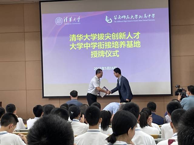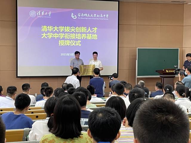 5月16日,华南师范大学附属中学(下称“华附”)举行“清华大学拔尖创新人才大学中学衔接培养基地”(下称“清华大学拔尖创新人才培养基地”)授牌仪式,华附成为清华大学拔尖创新人才培养基地在广东首批遴选的5所中学之一。