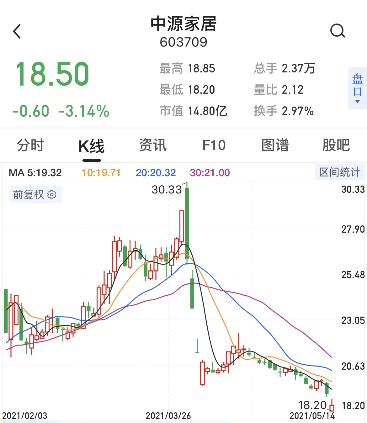 中源家居于2018年在上海主板上市交易,主要从事沙发的生产和销售。2020年年报显示,公司2020年实现营业收入11.62亿元,同比增长8.67%;实现归母净利润4171.84万元,同比增长23.76%。值得关注的是,中源家居上市3年以来,该股股价出现过4次大起大落的现象,其中2020年5月以来股价大幅波动的过程中均出现闪崩现象,不少投资者的财富也随着股价闪崩而蒸发。而被叶飞曝光后,中源家居13、14日股价连跌两日,跌幅近7%。