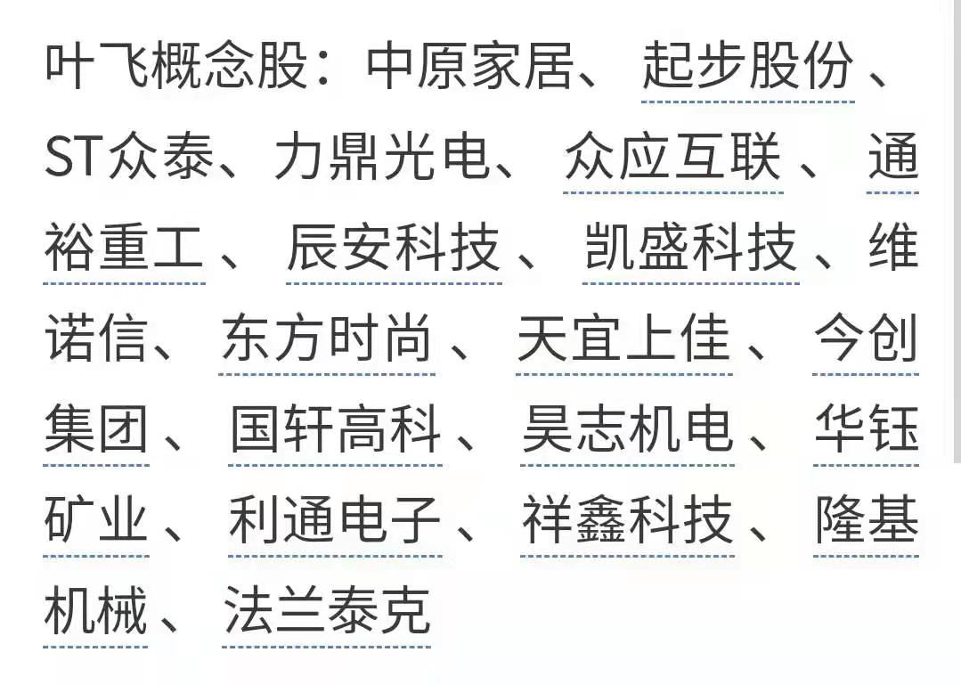 (上表:网友根据叶飞新浪微博和直播整理的相关股票)