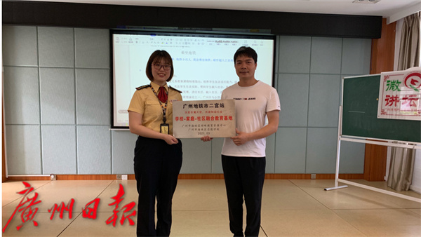 近日,地铁公园前中心站走访了广州市海珠区启能学校。该学校是毗邻该中心站下辖的市二宫站一所以招收智力特殊儿童为主的特殊教育学校。中心站向学校介绍了广州地铁无障碍设施、求助热线、导向贴纸、爱心预约等服务措施,通过校企共建的方式,传达安全出行知识,提升特殊儿童的自我安全保护意识,传递地铁无障碍服务的温暖。学校对车站一直以来对特殊儿童出行提供的帮助表示感谢,并向车站颁发了“学校-家庭-社区融合教育基地”牌。