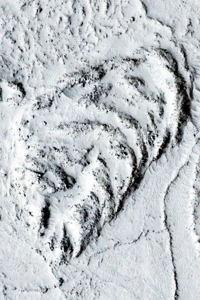 (埃律西昂平原上的一处火山熔岩,堆积出绳状外观,原图为黑白照片且无比例尺,图源:NASA)