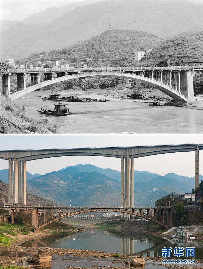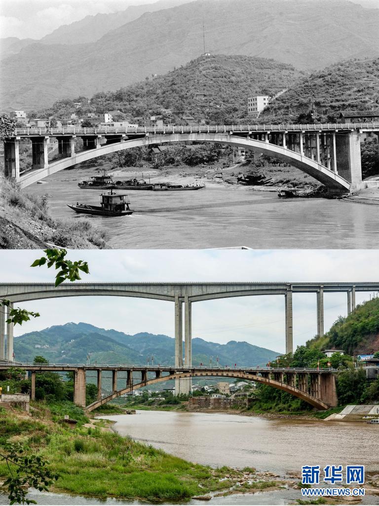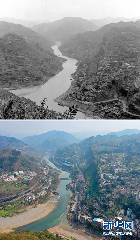 这是一张拼版照片,上图为:红军四渡赤水之一的太平渡口(资料照片);下图为:2021年2月24日拍摄的太平渡口新貌(新华社记者刘续摄)。新华社发