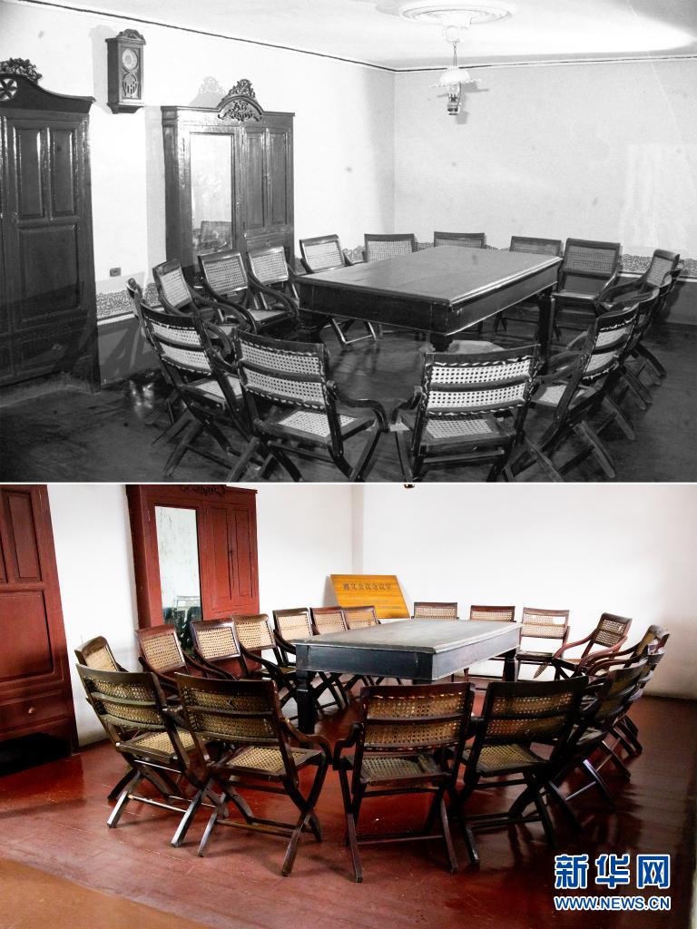 这是一张拼版照片,上图为:1985年1月14日拍摄的遵义会议会议室(新华社记者任用昭摄);下图为:2021年1月27日拍摄的遵义会议会议室(新华社记者欧东衢摄)。新华社发