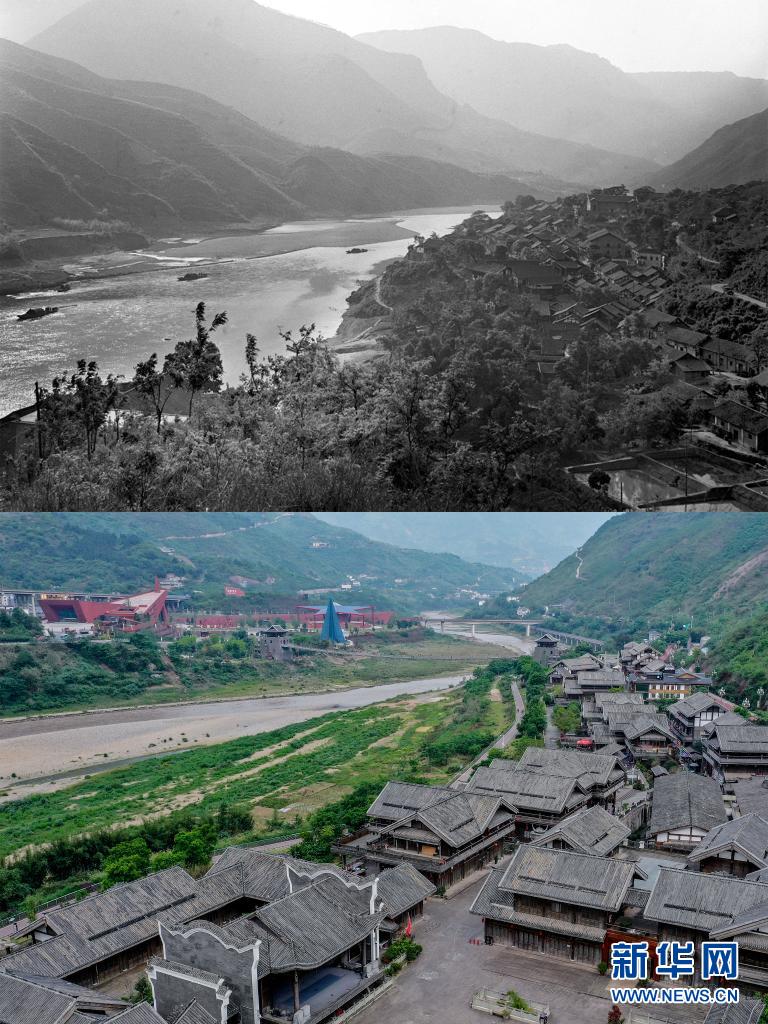 这是一张拼版照片,上图为:1975年6月24日拍摄的贵州省遵义市习水县土城镇(新华社记者周浩荣摄);下图为:2021年4月21日拍摄的贵州省遵义市习水县土城镇(新华社记者欧东衢摄)。新华社发
