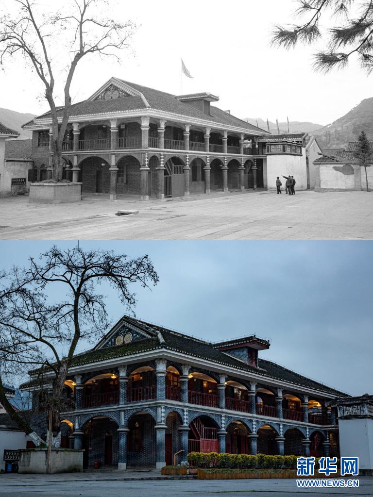 这是一张拼版照片,上图为:1981年8月21日拍摄的遵义会议会址(新华社记者周浩荣摄);下图为:2021年1月27日拍摄的遵义会议会址(新华社记者欧东衢摄)。新华社发