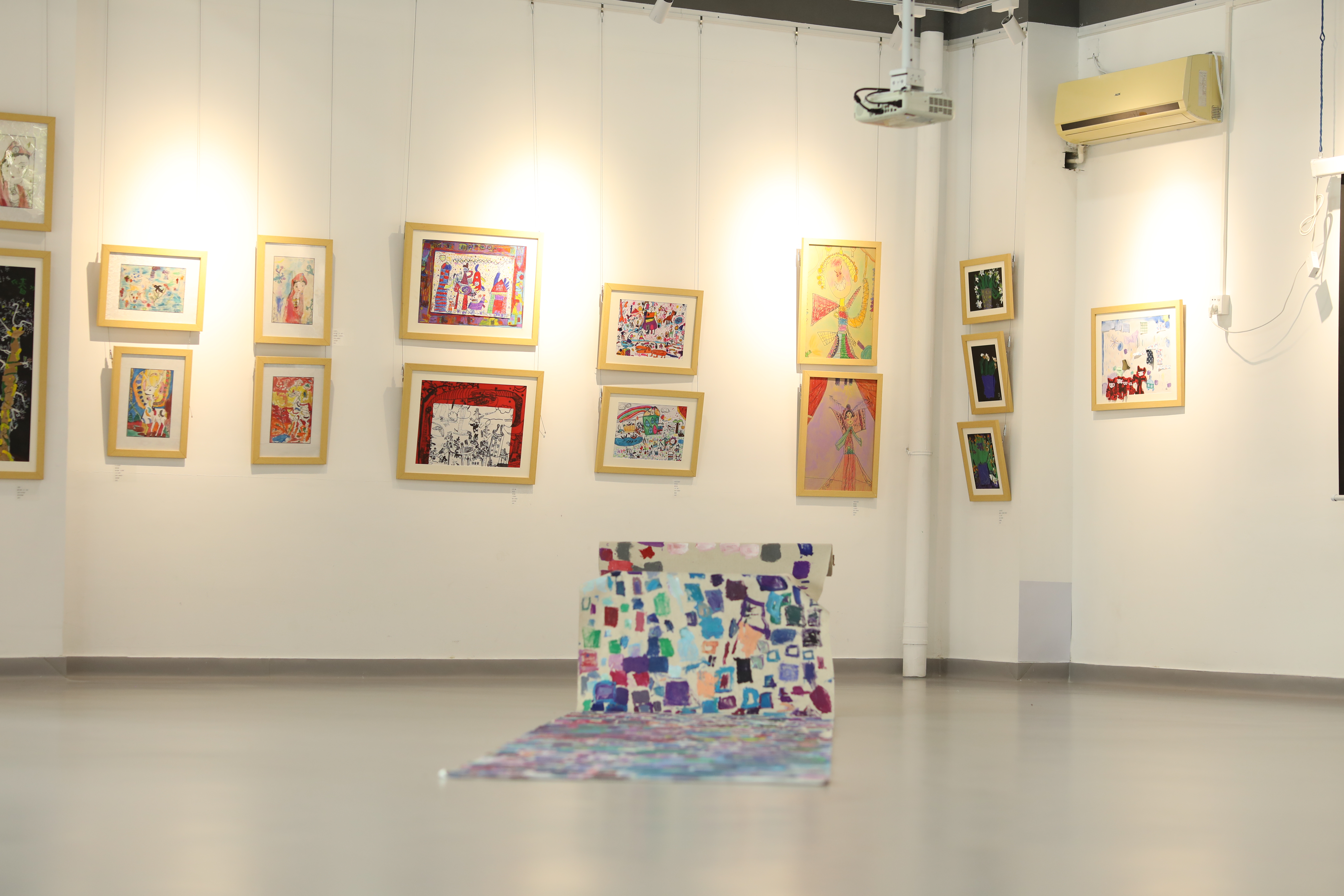 作品中,既有反映粤剧表演的人物画,也有对未来宇宙的大胆描摹,还有以敦煌为原型的全新表达,以及根据不同材料的创意拼接……每一幅作品都是孩子们独一无二的鲜活艺术表达,展现了孩子们对未知明天的憧憬、思考以及灵动的想象力。