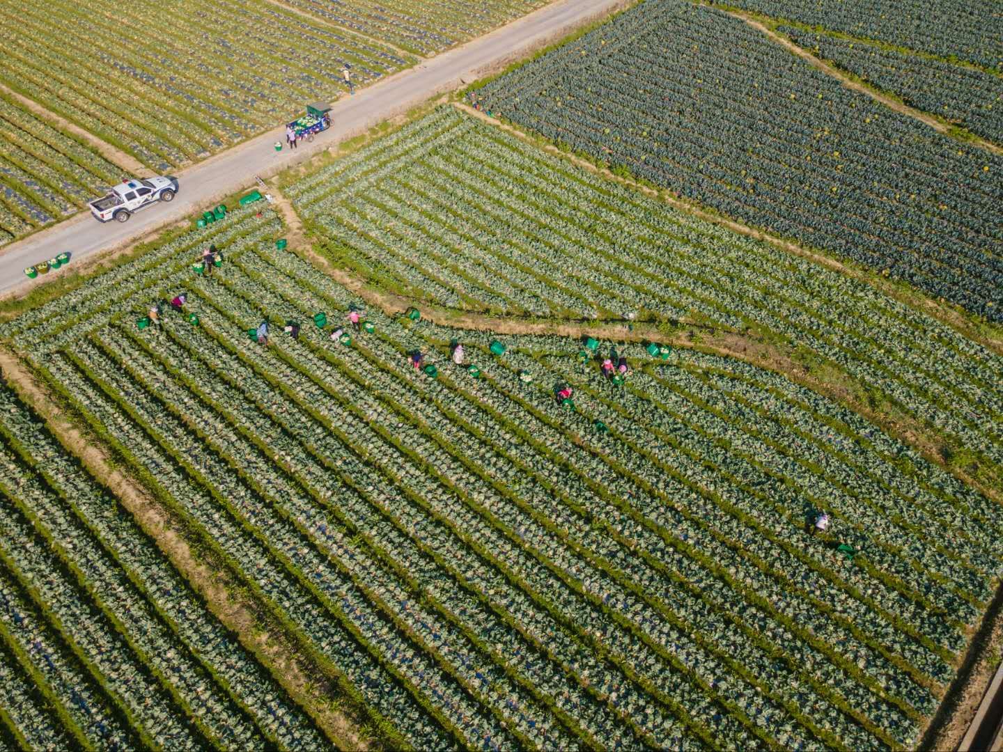 早上七点,董塘镇江头村2000余亩的蔬菜种植基地一片忙碌,菜农正在抢收辣椒、茄子等蔬菜。蔬菜基地管理人王海平说:“我们请了200多位村民来务工,每天要采收10万斤蔬菜,11点左右趁着新鲜把刚采摘的蔬菜发往北京、珠三角、韶关等地。”