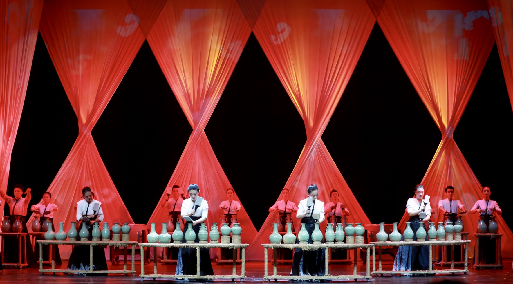 音乐会《听·瓷》跨界融合多种舞台表演形式,以瓷乐演奏为表现主体,以情境舞蹈为点缀,以现代舞美为烘托,还展现了越窑青瓷的发展脉络和烧制工艺,重现了窑工劳作的场景。