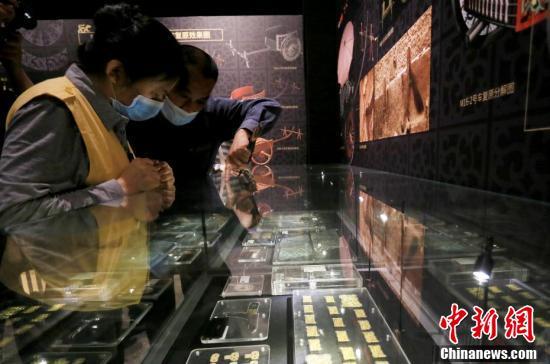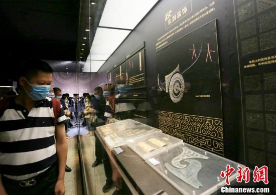 5月18日,兰州民众在甘肃省博物馆参观马家塬出土的车马饰、车马器。(中新社记者 高展 摄)