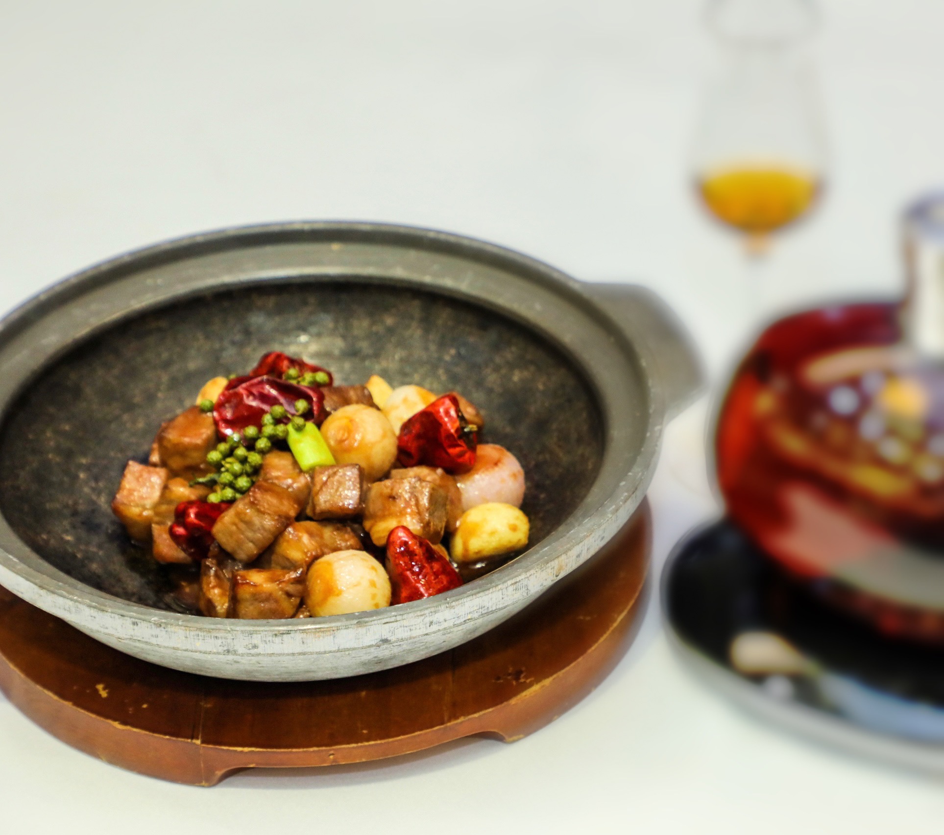 据品酒师与主厨介绍,黑松露时蔬煎澳带搭配可雅桶藏6年VSOP,能保留酒细嫩的润泽感,又增加澳带的鲜味;砂锅红烧肉搭配可雅桶藏10年XO,独特的木香和花香,以及余韵中的那点微甜都能很好展露出来;石窝煎烹雪花牛肉搭配可雅桶藏15年XO,牛肉的油脂让白兰地入口更加顺滑,与此同时,雪花牛肉的香味也得到进一步提升。