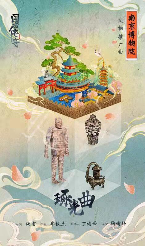 鞠婧祎演唱的《琢光曲》以南京博物院《竹林七贤与荣启期》砖画拓片、“明洪武釉里红岁寒三友纹梅瓶”“雕漆山水人物纹盒”文物为素材。