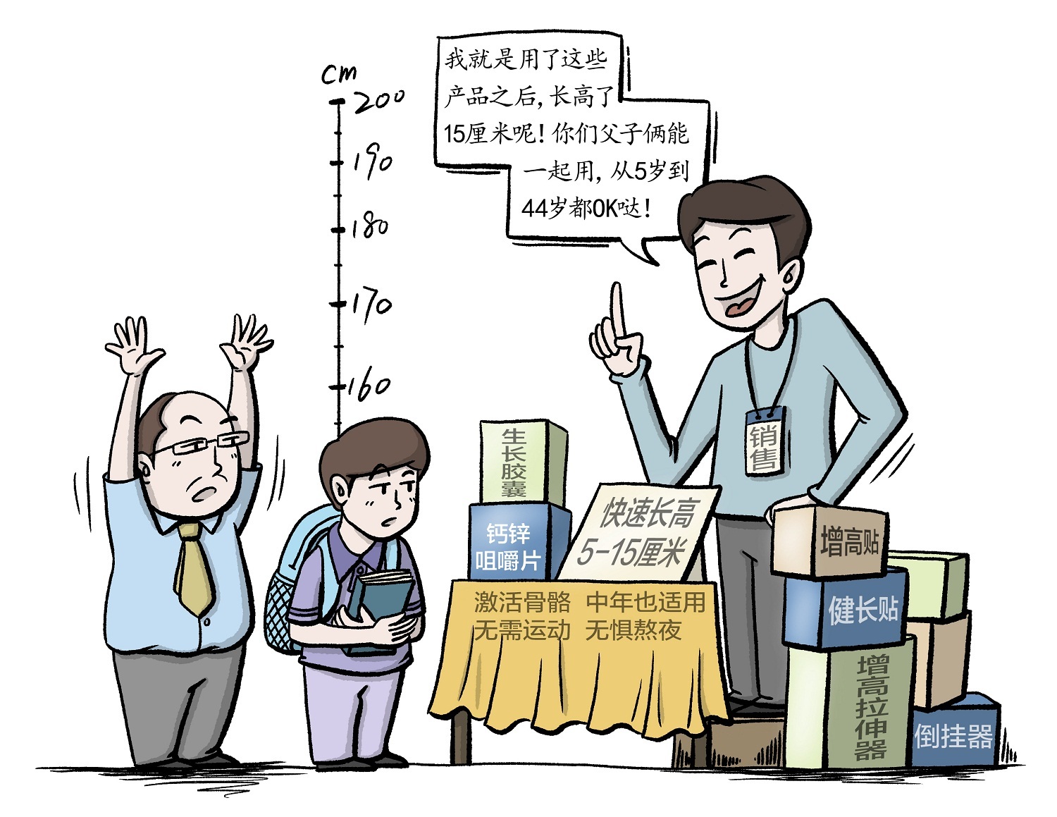 “124厘米,还是偏矮,起码要达到130厘米才能算标准。”给8岁的儿子量完身高,许昕有些沮丧。到网上搜索有关“增高”的产品,她发现种类繁多。“有口服的,也有外用的,还有专门的器械,说得都挺玄乎,让人眼花缭乱。”