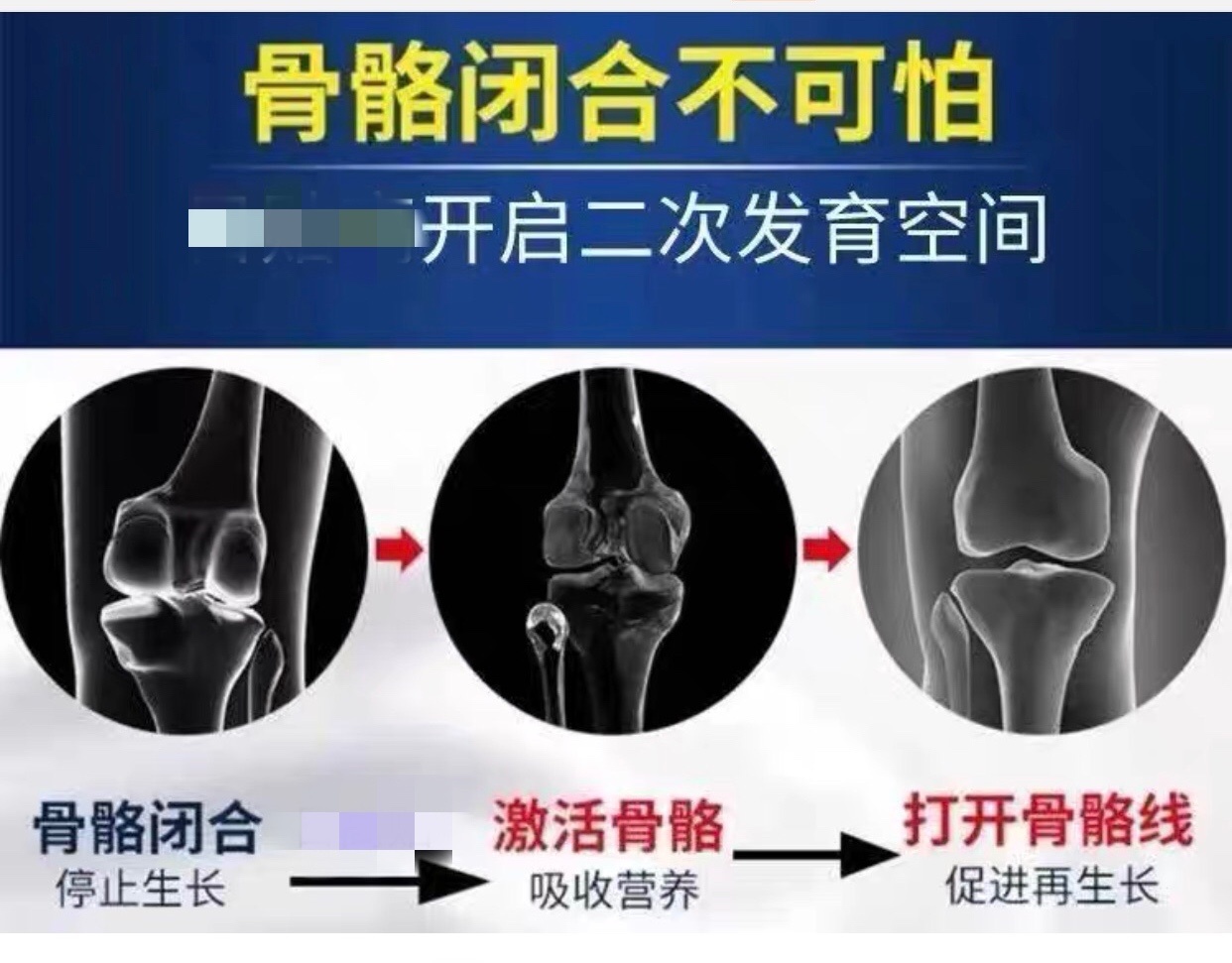 当记者问到是否需要先拍片子确认骨骺线有没有闭合时,客服答复称,“不需要的,骨骺线闭合只是说您本身不能再自然生长了,但是并不影响产品吸收的。客户当中好些都是医院确诊闭合了,服用我们的产品再次发育的呢。”