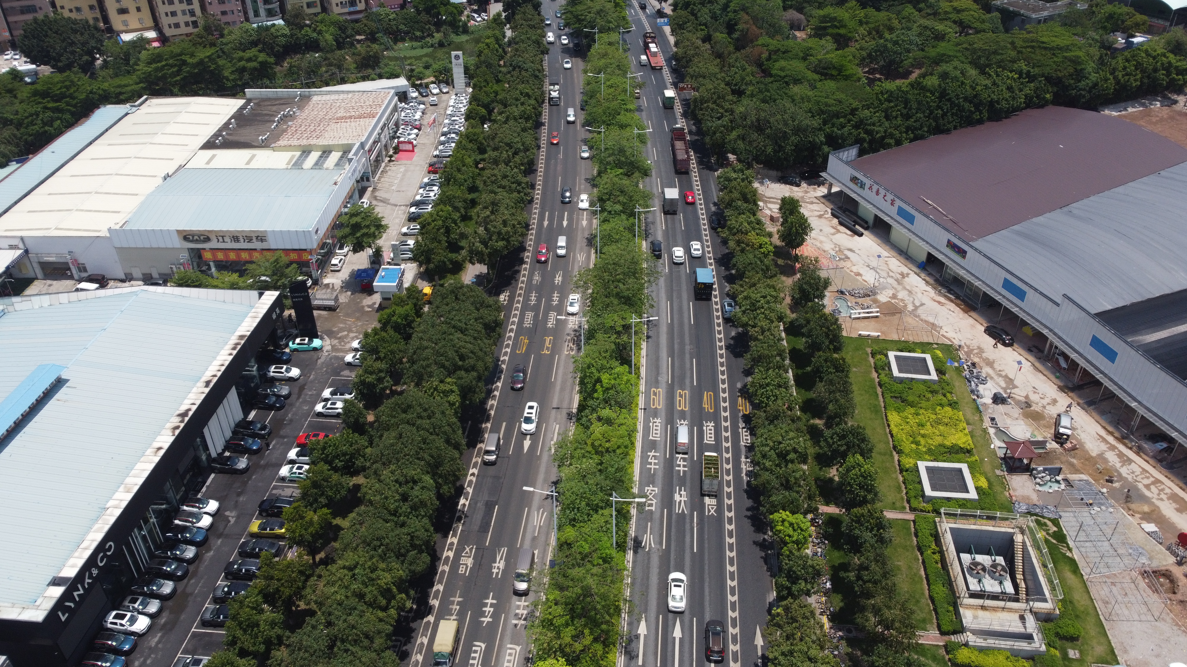 龙溪大道为已建成广佛边界五丫口大桥至花地大道段,现状双向8车道的城市主干道。设计速度 60千米/小时,而此次改造将优化项目西起凤西二路,东至花博大道,全长 1.94千米。