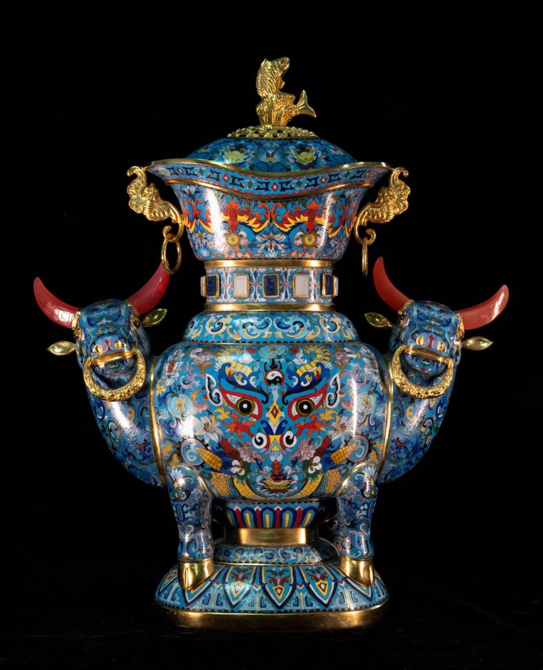 景泰蓝,中国的著名特种金属工艺品之一,是一种在铜质的胎型上,用柔软的扁铜丝,掐成各种花纹焊上,然后把珐琅质的色釉填充在花纹内烧制而成的瓷器器物。因其在明朝景泰年间盛行,制作技艺比较成熟,使用的珐琅釉多以蓝色为主,故而得名“景泰蓝”。
