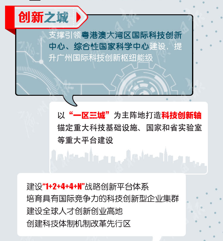 《纲要》强调,要统筹推进科技创新轴、战略创新平台体系建设和产业技术创新能力提升,建设创新之城,将广州打造成为具有全球影响力的科技创新高地。