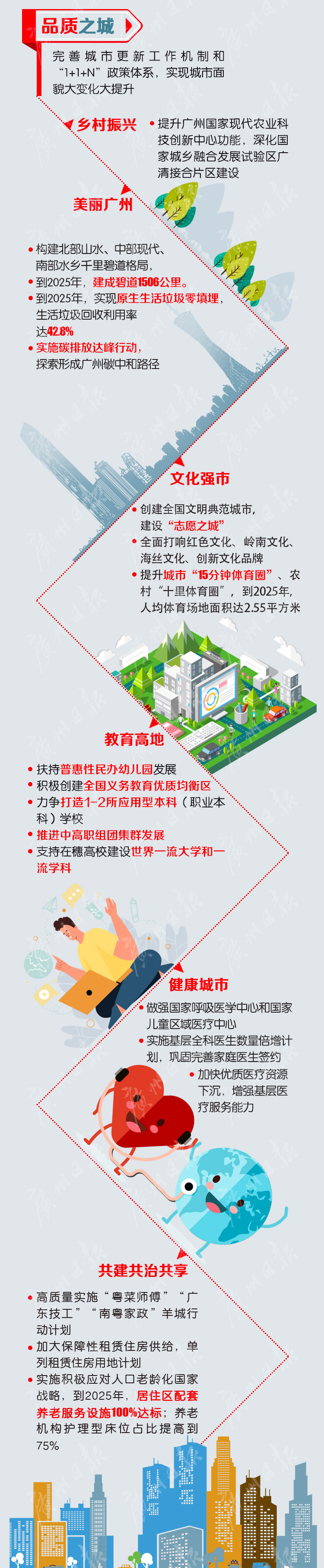 统筹推进城市有机更新、生态系统建设和民生福祉改善,建设品质之城,将广州打造成为美丽宜居幸福国际大都市。