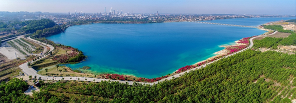 湖畔7000多亩的叶相思与细叶榕成片树林,傍晚可以欣赏百鸟归林的胜景,白鹭翱翔,水鸟觅食,湖畔生长达十里的野杜鹃,火一样鲜红耀目,是情侣们拍照、约会的好去处。