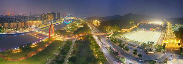 江门河北岸以“梦回长堤”为主题,融入江门历史文化元素同步进行景观提升,展现侨乡不同时期的城市风貌。大河之上,横跨两岸的釜山人行天桥则与江门市首条大型空中景观廊道——江海云道衔接,实现“两区”(蓬江区、江海区)“四园”(釜山公园、白水带公园、体育公园、儿童公园)的互联互通,温馨的儿童乐园,让人畅想爱情的结晶。华灯初上,釜山天桥变换着七彩光影倒映水面,流光溢彩,让人流连忘返,一起来浪漫“打卡”吧!
