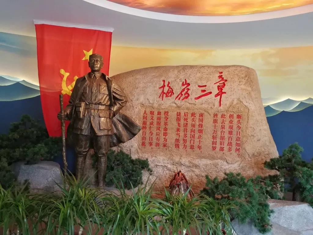 梅岭三章纪念馆是江西省爱国主义教育基地,于2017年9月26日隆重开馆,向游客免费开放。纪念馆主体建筑面积2900多平方米,其中陈展面积1300多平方米。馆内设有陈毅元帅诗词专题展厅、多功能影像厅等。其中,陈毅元帅诗词专题展厅由序厅、“创业艰难百战多”“大庾岭上暮天低”“弥天烽火举红旗 ”、 “团结抗日下山来”五个部分组成,以雕像、大型场景、图片、书籍等各类文物陈列,真实再现了游击战争的光辉历史,弘扬坚定信念、百折不挠、艰苦奋斗的革命精神。