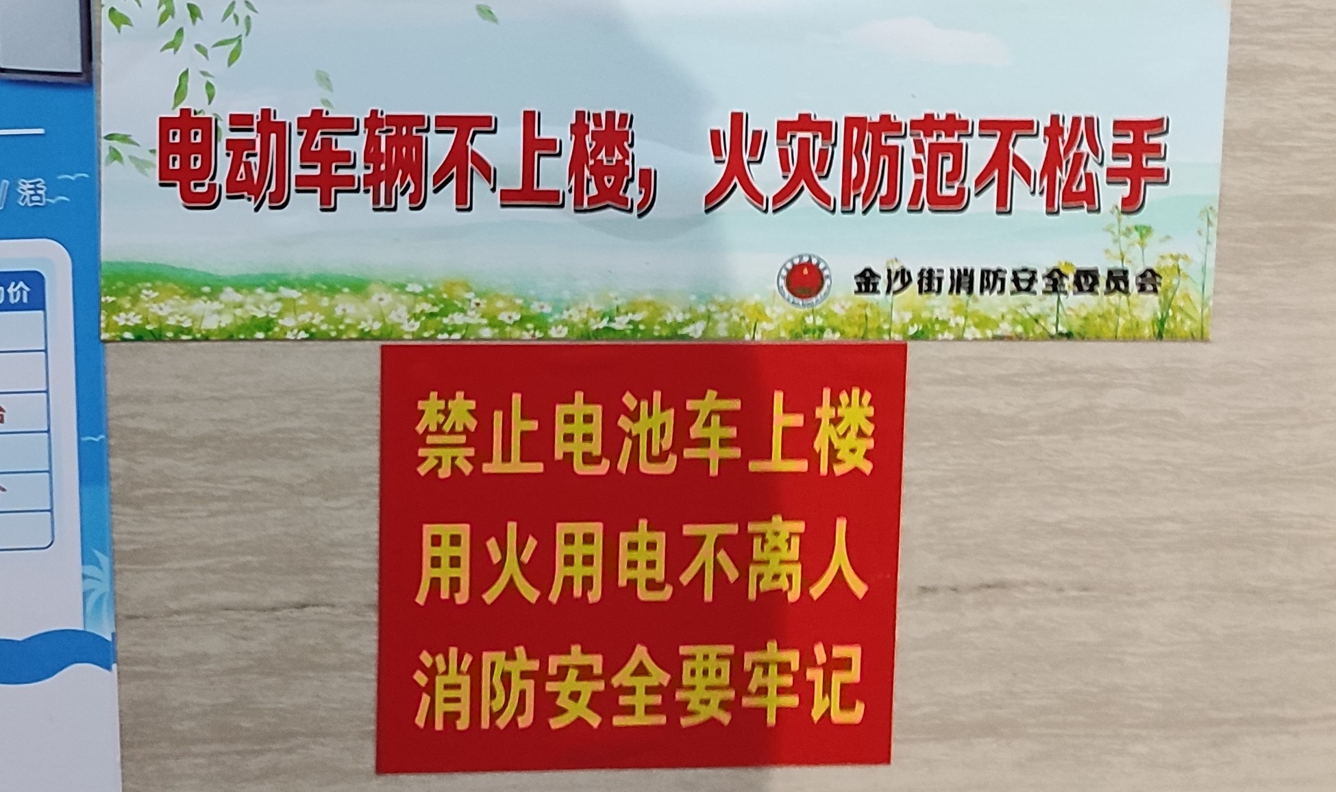 金沙街疏堵结合,加强源头治理,对销售组装经营单位、充电设施、辖内电动自行车充电便民停放点加大检查力度,各小区物业管理单位加大对居民电动自行车违规停放充电的劝阻制止力度,对屡劝不改者严肃处置,同时采取技防措施,鼓励小区尝试安装监控和电动车上楼报警装置,有效管控违规充电行为。