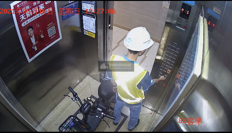 就在同一时间,电动车阻车入梯上楼报警系统向物管监控中心发出警报。监控中心的值班人员通过远程通话,对8B电梯内的演示技术人员进行远程对话劝阻。技术人员介绍说,在电动车推出电梯前,即使多次、强摁关门键,电梯门也不会合上,从而有效阻止电动车进入电梯,上楼充电。
