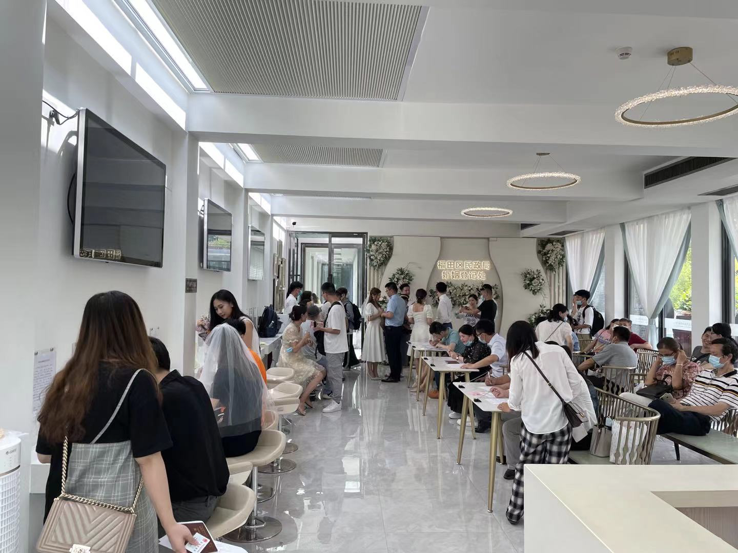 据武薇介绍,为了满足5月20日新人们踊跃预约登记的需求,该登记处增补了预约号,还接受福田区内户籍的新人现场排队办理登记。“平时预约登记号在七八十左右,有时小高峰100多一点,今年的‘520’,我们一共放出了近210个预约号。”