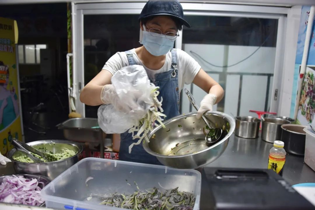凉拌鱼皮专设在店内另一个窗口,但由于供应量大,它们有专门的工厂供货,店内的鱼皮现拌现吃。很多人对凉拌鱼皮最初的担忧是“腥”,但是添味味的凉拌鱼皮给人一种与众不同的感觉。