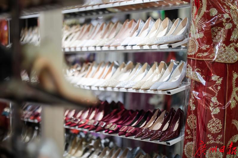 此外,款式多样、价格实惠的婚鞋网店正成为不少新人的首选。记者在某电商APP上看到,网纱、绸缎、粗跟、秀禾鞋等各式各样的婚鞋一应俱全,不少网店的婚鞋定价为150元左右,有的爆款甚至月销3000多双。在婚纱街开婚鞋店13年的黎先生表示:“在电商刚兴起那两三年我也做过网店,但没有获得很好的销量,而且做电商竞争很激烈。”他认为,现在的电商也提价了,有时比实体店还贵,在他店中的婚鞋售价介乎70元到100多元不等。