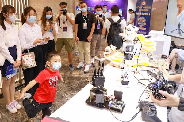 当天,开幕式外场设置了党建区、高新区、科普区、签赠区等展区。在党建区,结合党建AI机器人和展板,互动展示智慧党建、科技帮扶等方面内容。在高新区,展示了广州地区高校和科技企业发展成果,包括“天琴计划”、“天河二号”、“海洋科考船”和千玺机器人等。