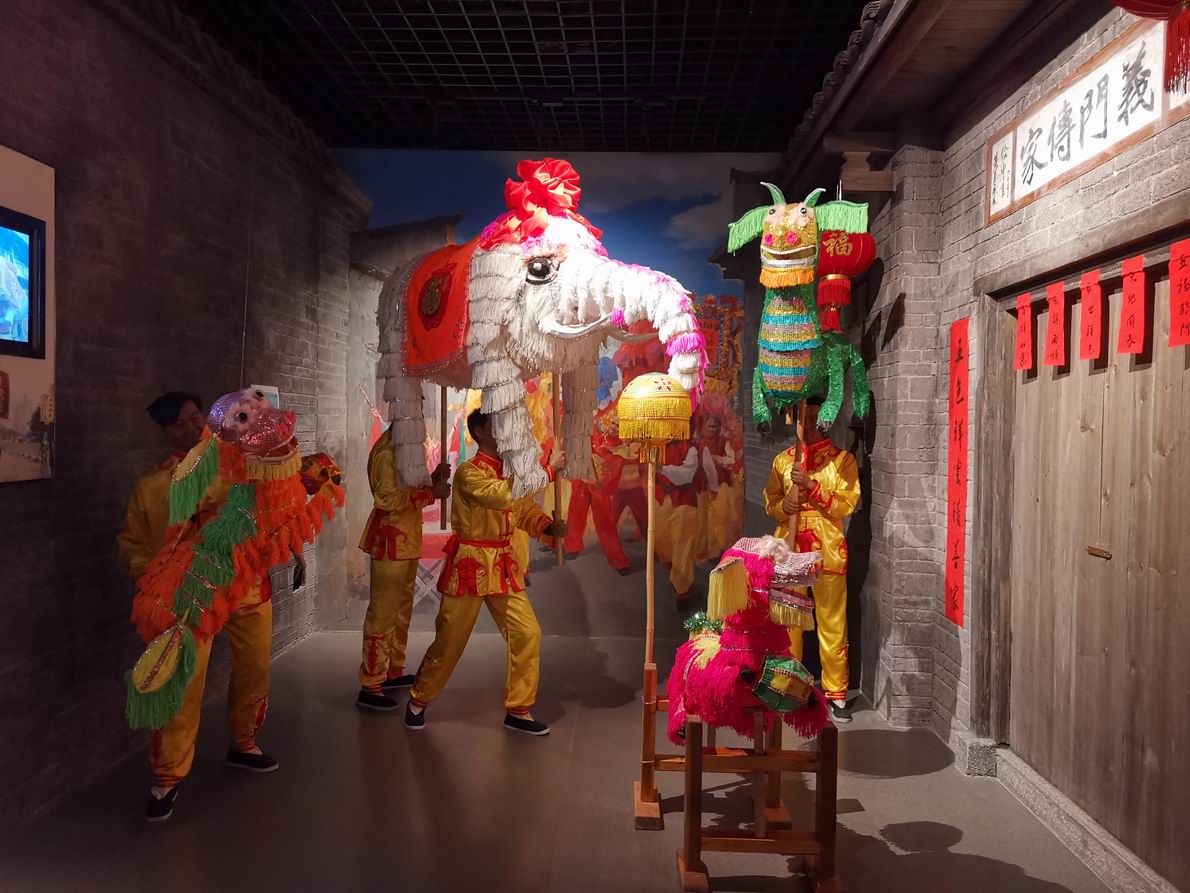 伴随着锣鼓与唢呐声,9只彩狮前呼后拥,浩浩荡荡,奔向头戴大红花的“大白象”。彩狮如众星捧月般围着慈祥的“大白象”做出各种动作,前翻后仰,相互逗趣;祥龙来回穿插、翻腾,麒麟则伸颈缩腰,瞻前顾后;“大白象”甩动着长长的鼻子,摇头晃尾,接受龙狮麒麟的朝拜……坐落于4A级阳明湖景区的上犹县非物质文化遗产展示馆内,采访团的老记小编们驻足着欣赏客家民俗活动“九狮拜象”场景。