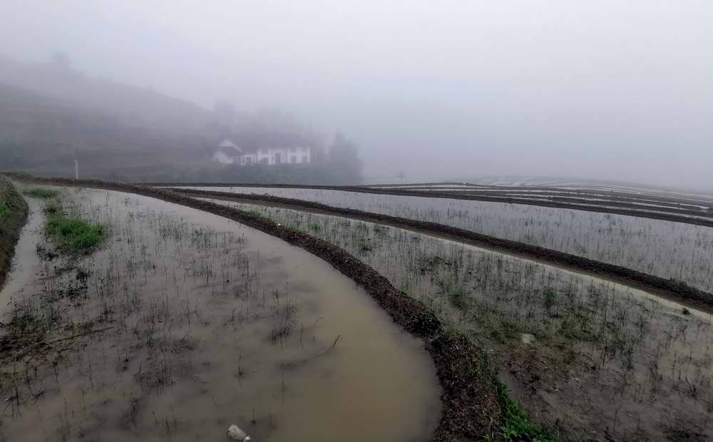 当三省主流媒体到来时,正逢农家大忙时节,水满田畴,一块连着一块,一层接着一层,大大小小,形态各异。放满水的梯田水润灵动,四处一片水光粼粼。绿色的山峰云雾缭绕,周围的景物一片朦胧,仿佛童话中的仙境。站在站在高处,好似走在云之间,飘渺的雾气中层层梯田用优美的曲线勾勒出一幅幅淡雅的中国水墨画。