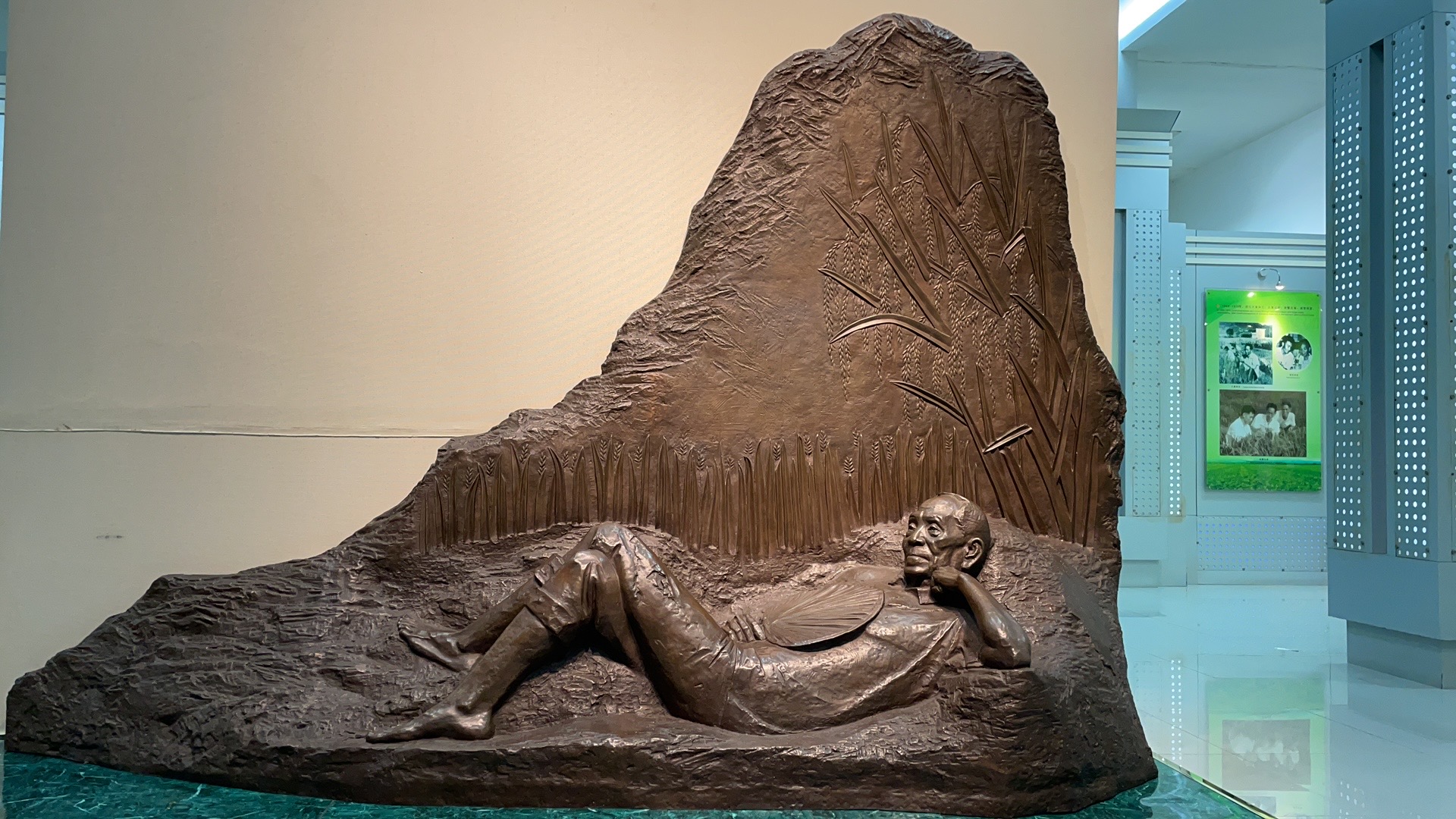 记者进入中心后,来到杂交水稻展览馆,发现很多市民在展览馆内参观。这个展览馆展示了我国杂交水稻从无到有的全过程,中间还有一幅袁隆平的禾下乘凉梦雕塑,不少前来吊唁的群众在此驻足。