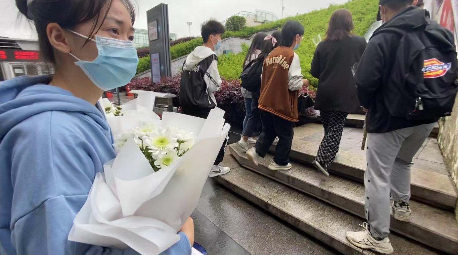 5月23日中午,记者刚刚抵达长沙南站,在出站大厅里看到很多衣着肃穆,手拿鲜花的乘客。长沙南站的出站口,很多出租车司机在招呼:“有去明阳山的吗?”