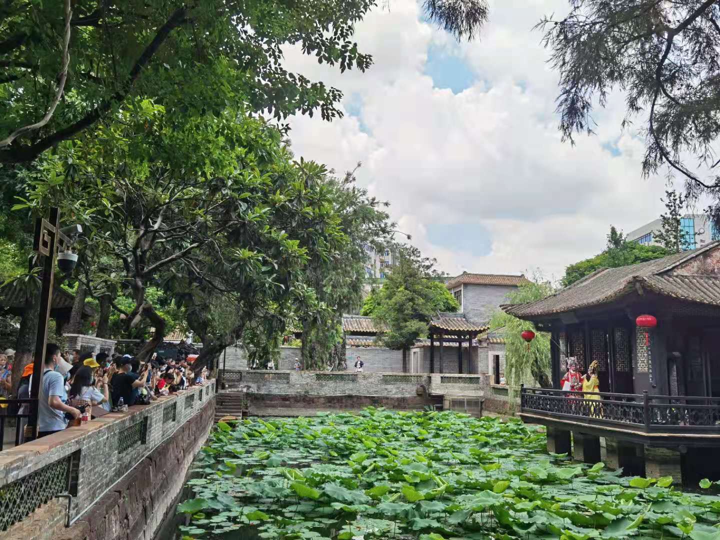 欢乐旅游日当天,现场活动各具特色、精彩纷呈。其中,有汉服巡游和汉舞快闪,典雅亭台楼阁间,有俏丽佳人闻音起舞,让游客齐享汉服园林之美。而现场摆放了顺德方言文字主题的打卡点,方便游客在“打卡”集图的同时,了解顺德方言的奥妙。此外,“凤城老字号”展览让游客了解顺德老字号企业的历史渊源更享消费折扣。
