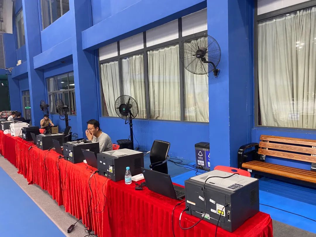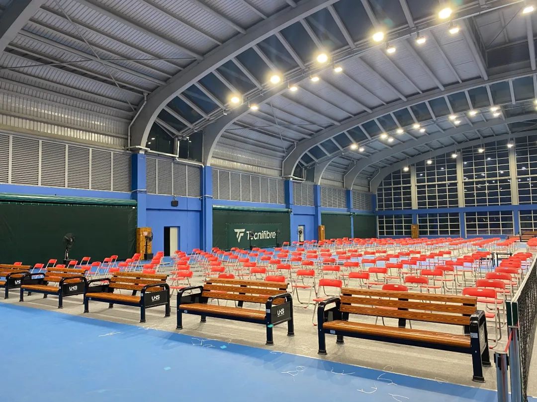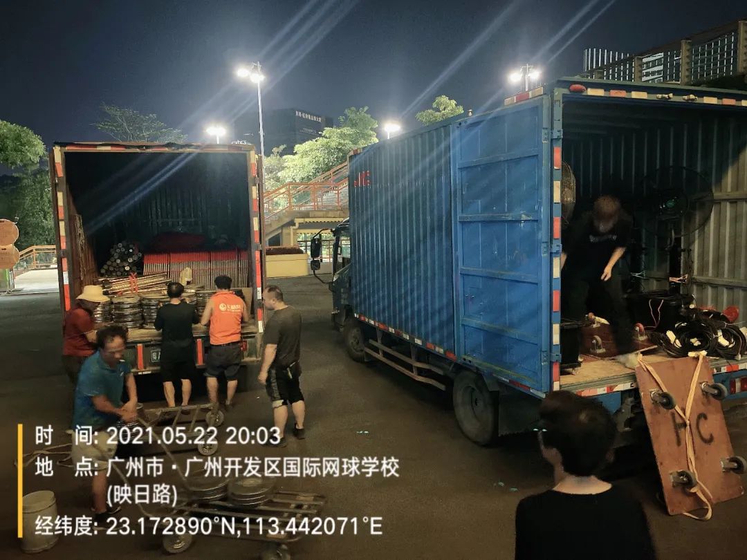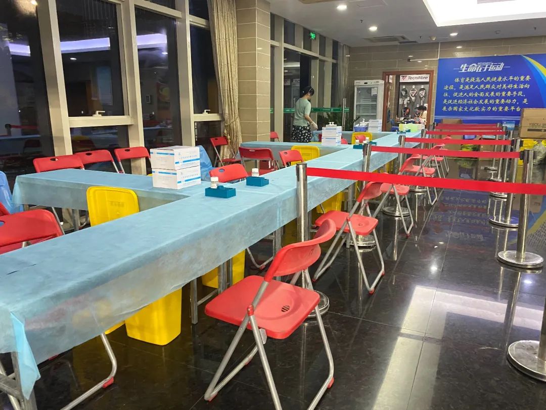 22日,位于广州开发区国际网球学校的疫苗接种点也在紧急布置中。