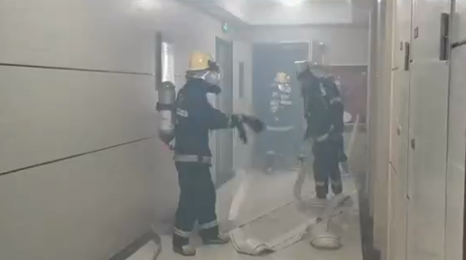 上午10时,演练正式开始。演练模拟发生在6楼某单元,因业主煮食忘记关火,导致发生火灾。由于风势较大,火势蔓延较快,浓烟四起。起火后,物业管理单位立即启动应急预案,迅速疏散该楼层居民,并拨打鱼珠街道办事处值班室和119报警。