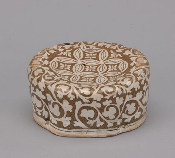 晚唐褐釉剪纸花纹长方形枕