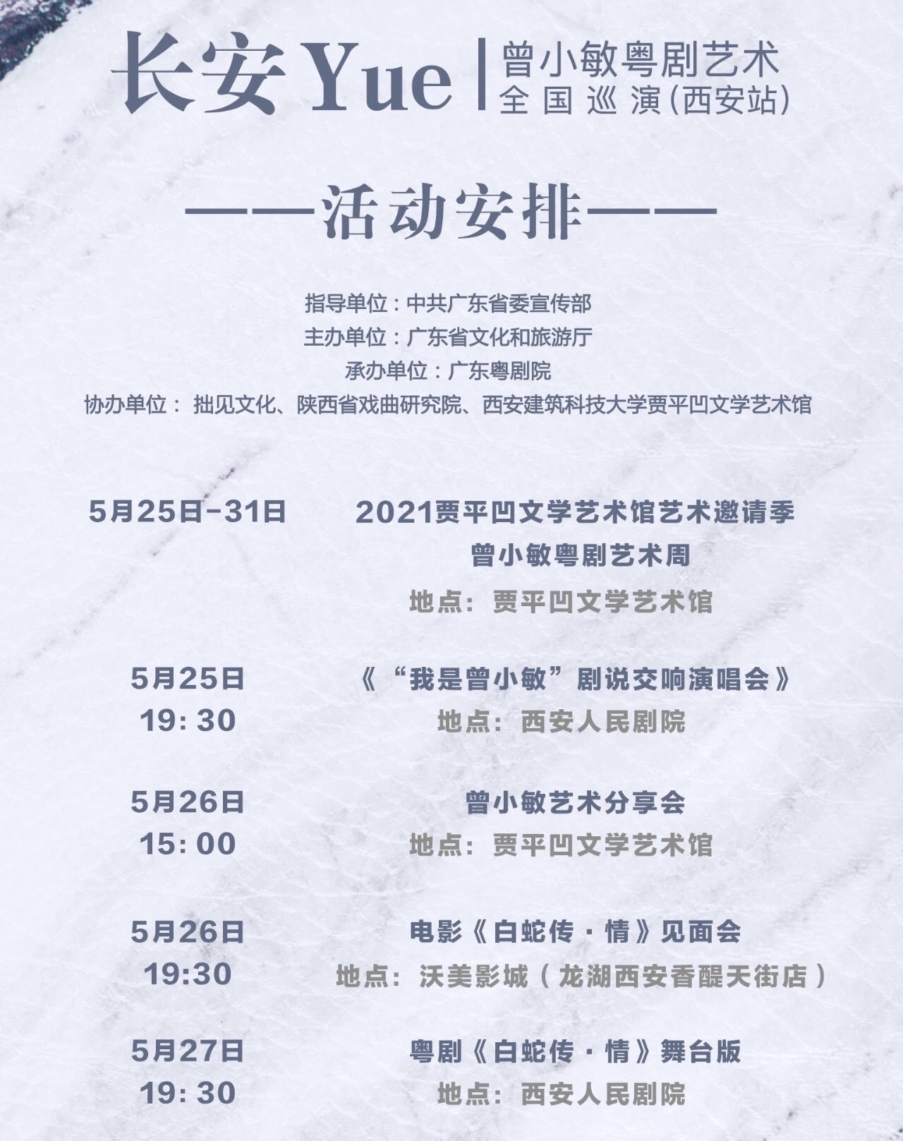 巡演期间,西安建筑科技大学贾平凹文学艺术馆还将举办曾小敏粤剧艺术周和曾小敏粤剧艺术分享会,通过展览和现场交流分享的形式,展示她近年在粤剧艺术上收获的果实。