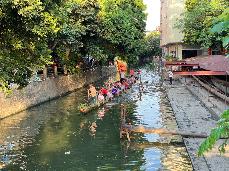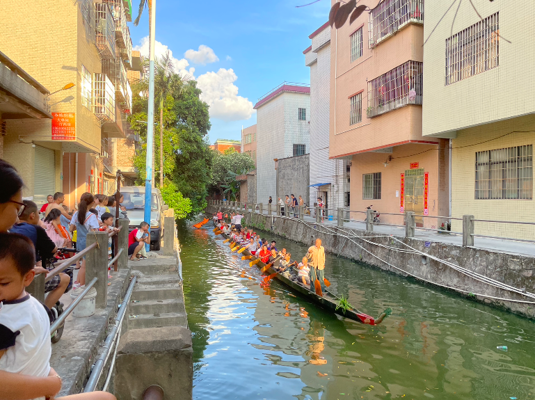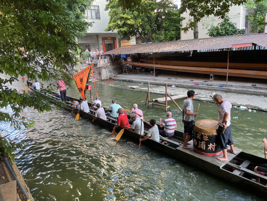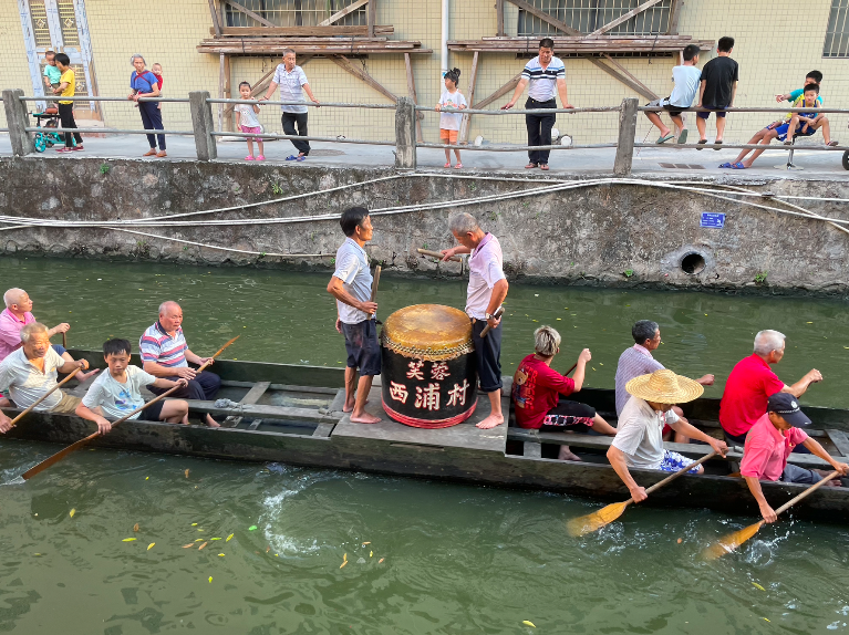 “看!龙船采青啦!”5月22日下午,荔湾区海龙街海北西浦村举行了龙船“采青”仪式。鼓点雷动,龙船沿着西浦涌来回三巡,吸引了不少村民驻足围观。