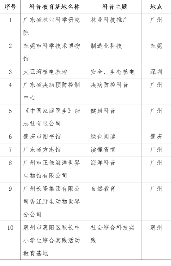 经综合专家评分和网络投票情况,活动评出了广东省林业科学研究院等10家单位,授予2021年度广东省“十佳科普教育基地”荣誉称号,并发放奖补资金10万元,用于完善科普基础设施和开展科普游等科普活动。