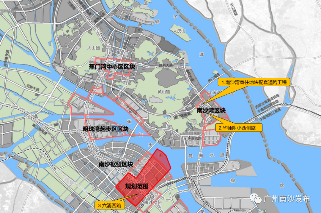 招标公告显示,南沙区计划投入5.36亿元建设辖内三个区域的7条交通市政道路,其中包括: