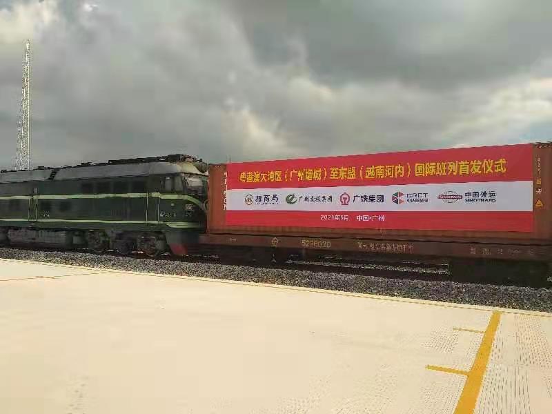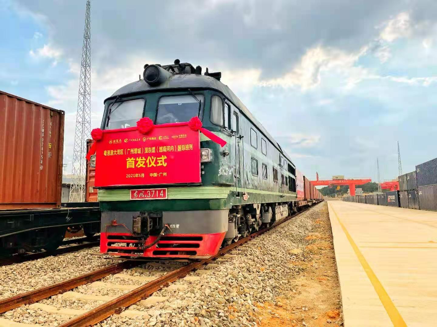随着一声汽笛长鸣,一列满载41个40尺集装箱货物的班列25日从广铁集团增城西站缓缓驶出,将经由凭祥口岸出境,将于4天后抵达越南河内。这是今年粤港澳大湾区首趟开往东盟的中亚班列,标志着粤港澳大湾区再添国际物流新通道,提速东盟与大湾区的物流发展。