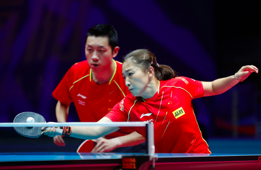 2021“直通WTT大满贯·世乒赛”暨奥运模拟赛今天继续在河南南阳举行。广州籍奥运冠军刘诗雯一日四赛,她与许昕参加了两场混双小组赛以及一场1/4决赛,又和陈梦参加了一场女双半决赛。刘诗雯在四场比赛中全部获胜,挺进了混双四强以及女双决赛。