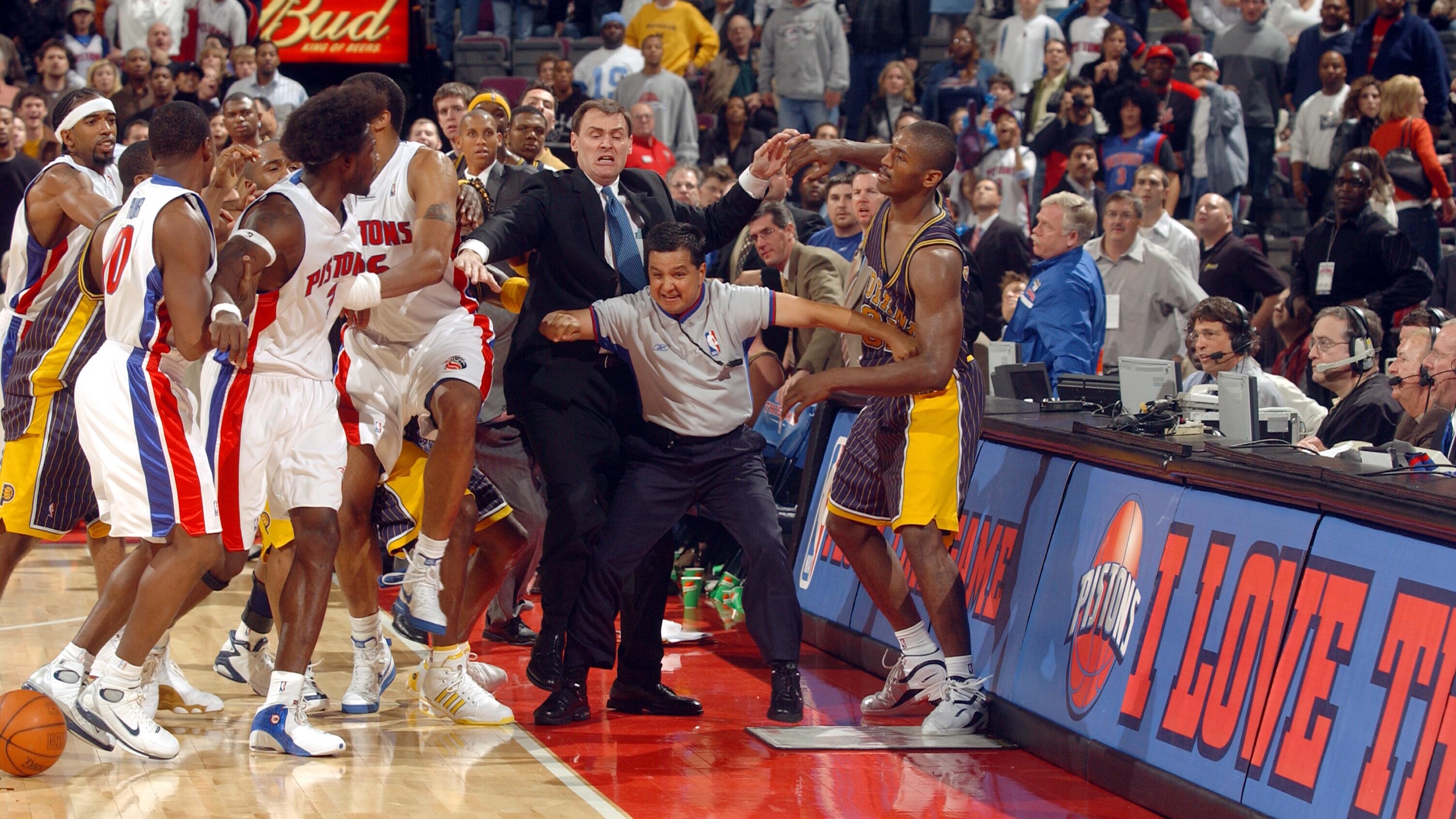 NBA历史上最严重的斗殴:奥本山宫殿事件。(NBA官方图片)