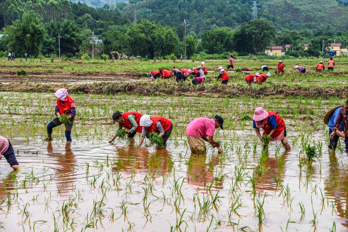 记者在现场看到,60多名志愿者躬耕于田间,忙得不亦乐乎。据志愿者欧初基介绍,当地政府组织人员远行百里,从江西于都县运来一大车秧苗,并组织党员志愿者参与到水稻的复种工作中来。目前,60多名志愿者已经完成了100亩水田的插秧任务。