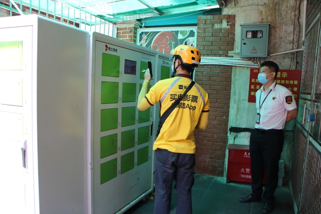 电动车不能上楼,那么充电该怎么办?天河路190号,是一栋单体楼,小区居民有使用电动车的需求,但没有充电的地方,因此以往常常推车上楼,存在不少安全隐患。后来,有企业在此安装了5个共享充电柜,让居民和骑手都可以把拆卸下来的电池存放在柜里充电。