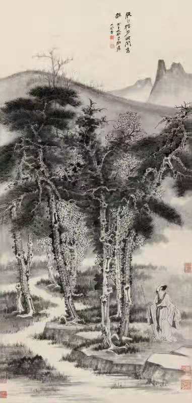 张大千《策杖独步》